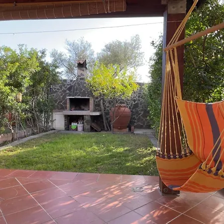 寝室1室のCasa Ambra - Villetta Con Vista, Giardino E Bbq ヴィッラシミーウスアパートはノッテリ ビーチから車で10分で、スピアッジャ・ディ・ポルト・ジュンコから3km以内の場所にあります。 広々とした80m²のアパートの特徴の一つは、山の眺めを楽しめるテラスです。